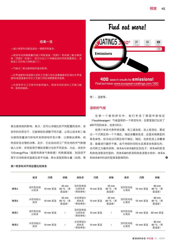 位置和涂装工艺对二氧化碳排放有影响